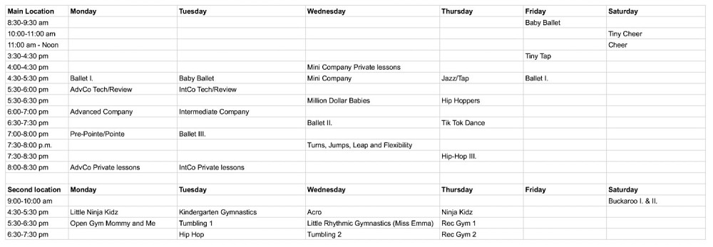 Jill's Studio is thrilled to offer year 'round enrollment, so that students can join in the fun at any time. Our 2025-2026 Fall/Spring class schedule can be found below for both locations! Descriptions of each of our classes can be found here. If you have any questions, or need class placement assistance for your child, please contact the studio.